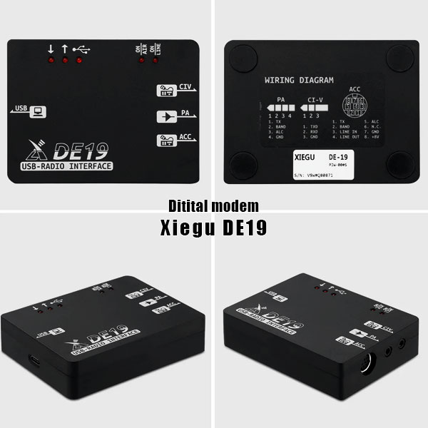 Xiegu DE-19 - это адаптер расширения трансиверов семейства Xiegu или так называемый модем для цифровых видов связи. Схема устройства состоит из нескольких блоков: блок интерфейса USB, блок изоляции, усилительУНЧ и блоки интерфейса, работающие с Xiegu G90, Xiegu G106 и Xiegu XPA125B. Устройство вполнено в виде внешнего адаптера подходит для большинства моделей трансиверов и устройств Xiegu.